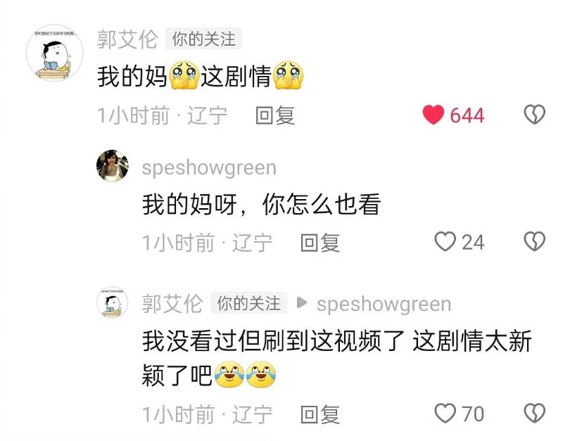 先來看看,19號晚上《以愛為營》就被吐槽上了熱搜,當時是因為劇中鄭書意參加婚宴時的片段,被國家運動員郭艾倫吐槽,表示:「我的媽,這劇情」!還表示自己沒追,但刷到了這視頻,劇情也太新穎了吧!