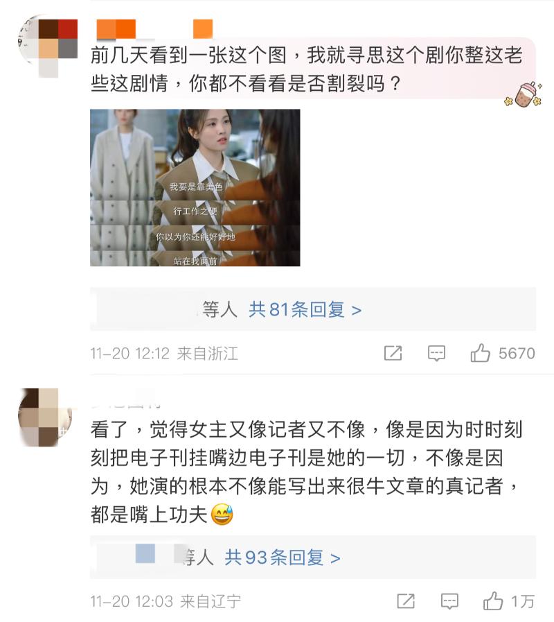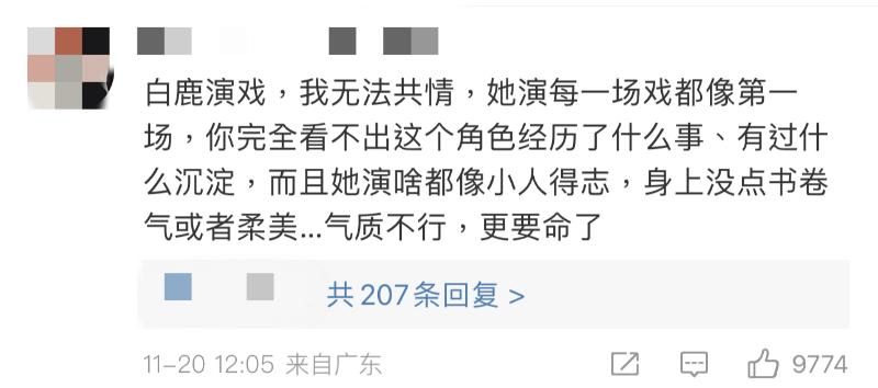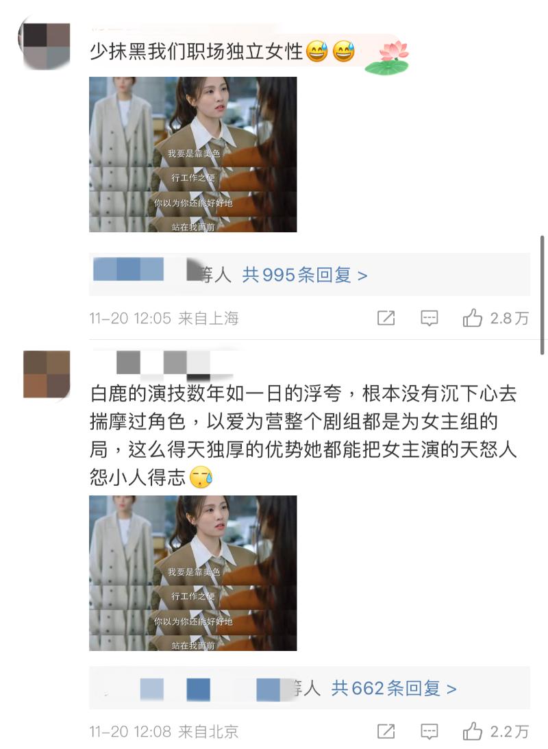 評論區清一色吐槽鄭書意的人設,認為她抹黑了職場女性,自然包括了白鹿的演技,也再次被審判了!