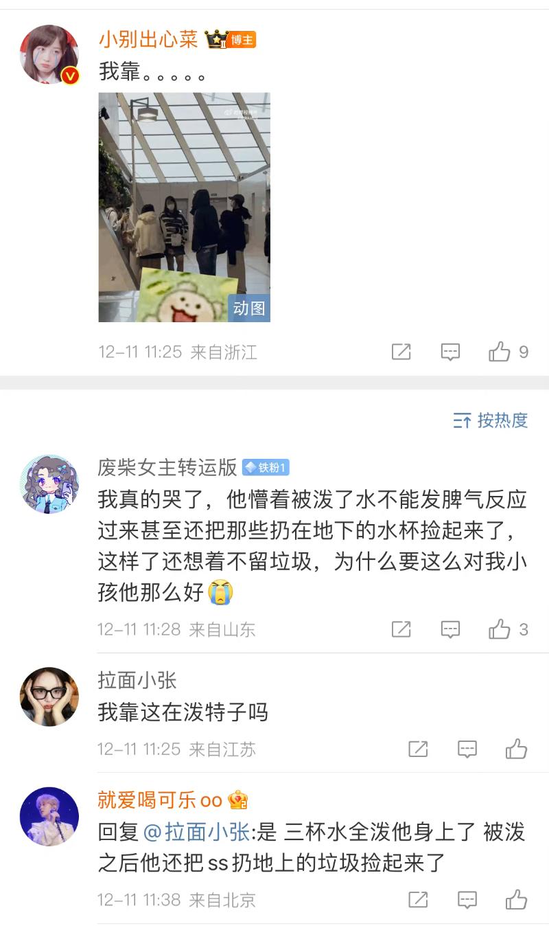 最令人無語的是,這些私生居然還在微博號上公開「第一視角」的潑水圖,甚至嗆聲「見你一次潑一次!」