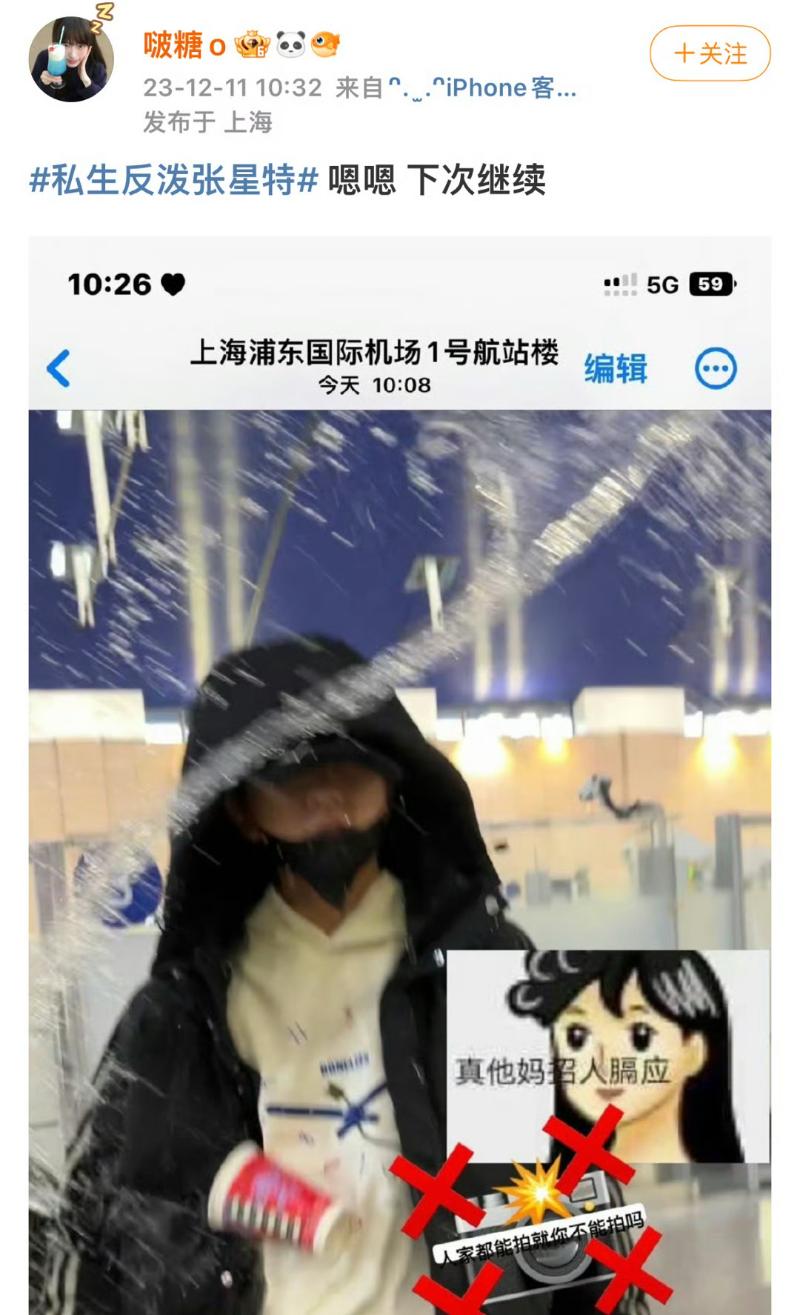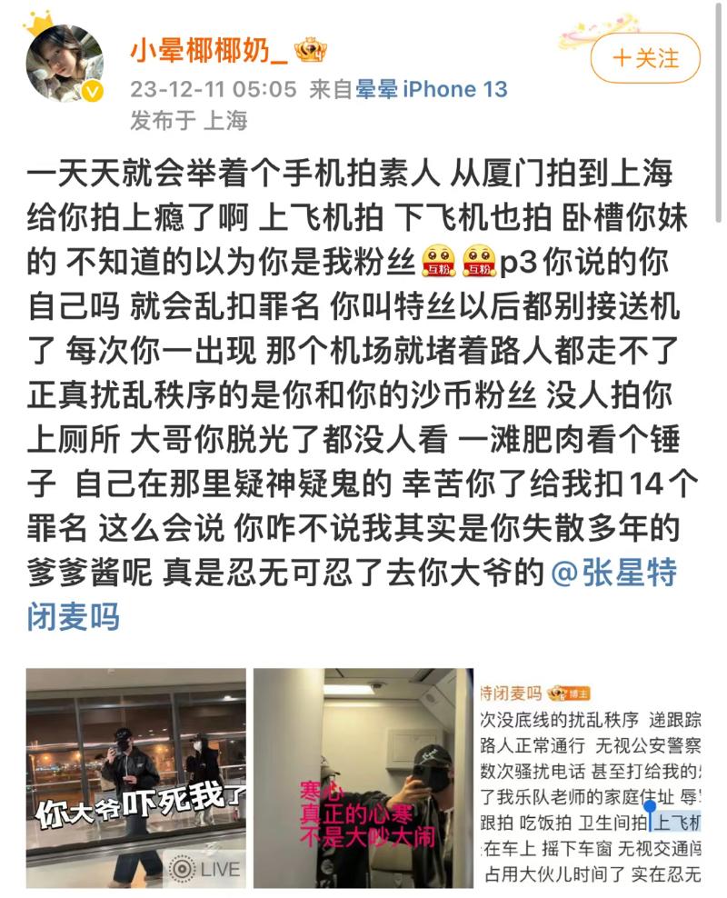 事實上,張星特長期飽受私生騷擾,9號他因為在機艙內被私生包圍,直接開了直播曝光他們的臉👇