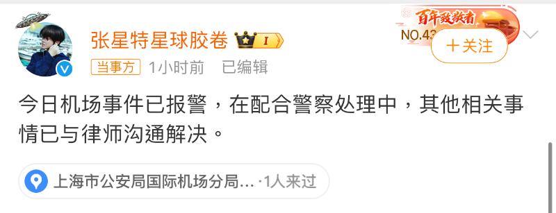 事發後,張星特工作室發聲明,已經報警,並和律師溝通解決中👇