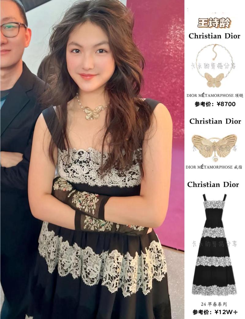就是說,和其他星二代還在穿童裝不同,王詩齡上身的都是大牌的成衣系列,比如Dior這套和王子文撞款👇