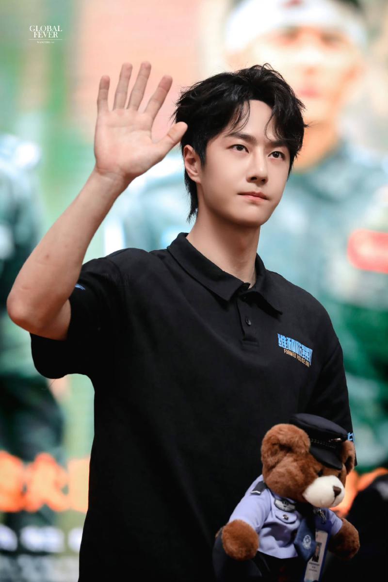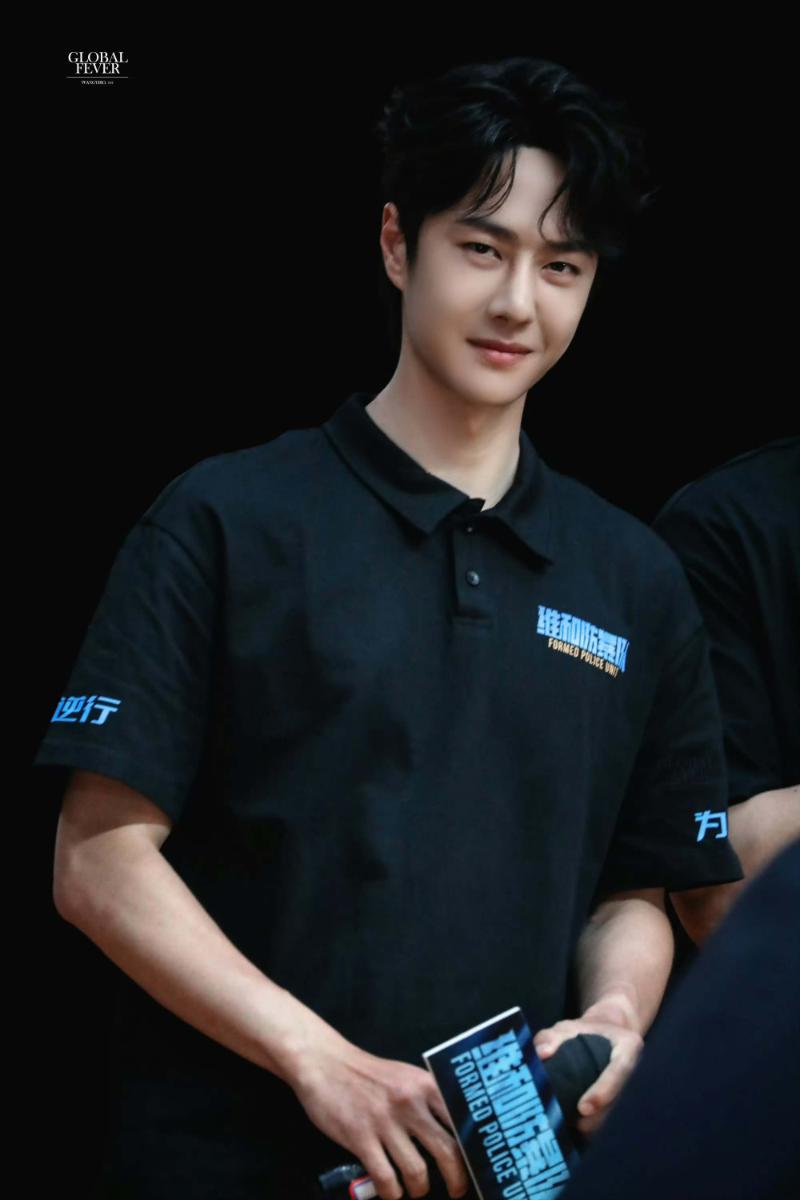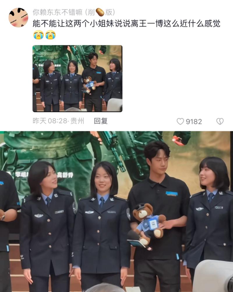 學校安排了未來警察上台送紀念品給演員們,自然包括了王一博!原本拍大合照時,警校生被要求站在中間,但大膽的警花們直接要求站在黃景瑜和王一博中間!於是…就有了這張粉絲們想都不敢想的…貼身合照👇