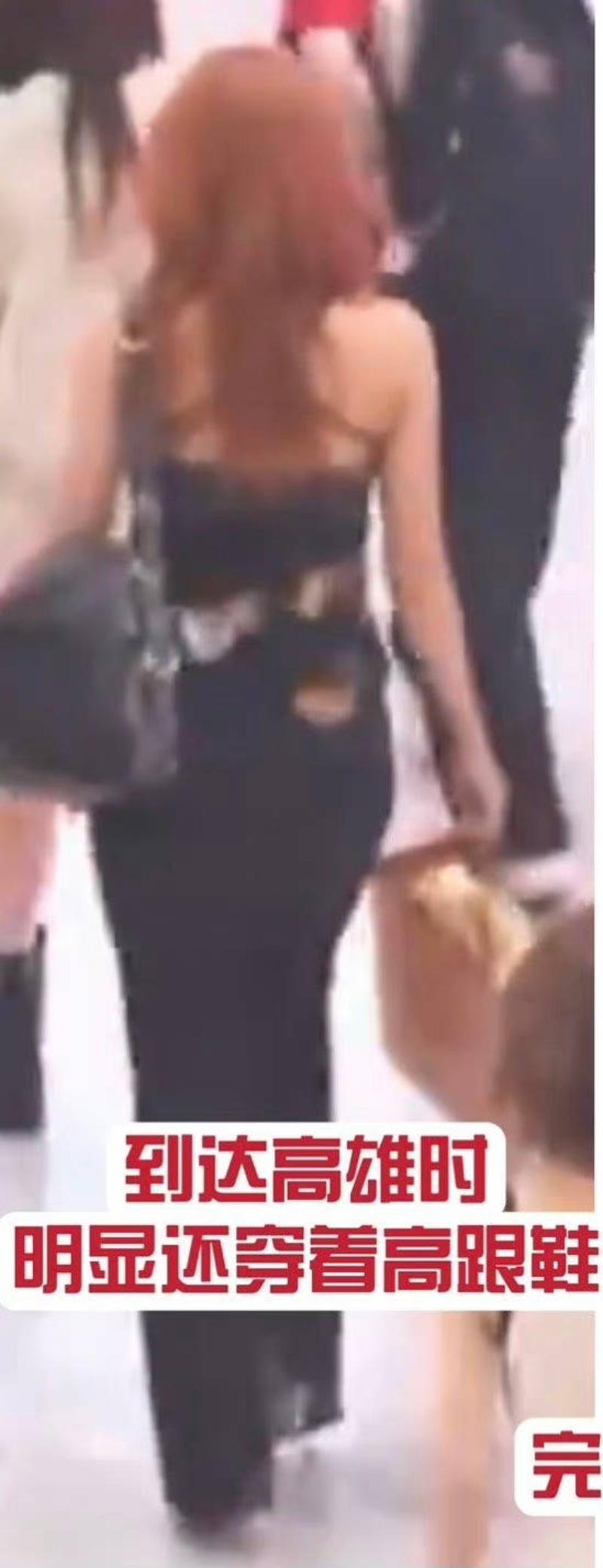 再來看看站姐提到的,瑟琪一直到了高雄機場關內,依然還穿著這雙高跟鞋,並沒有所謂的一上機就換鞋👇