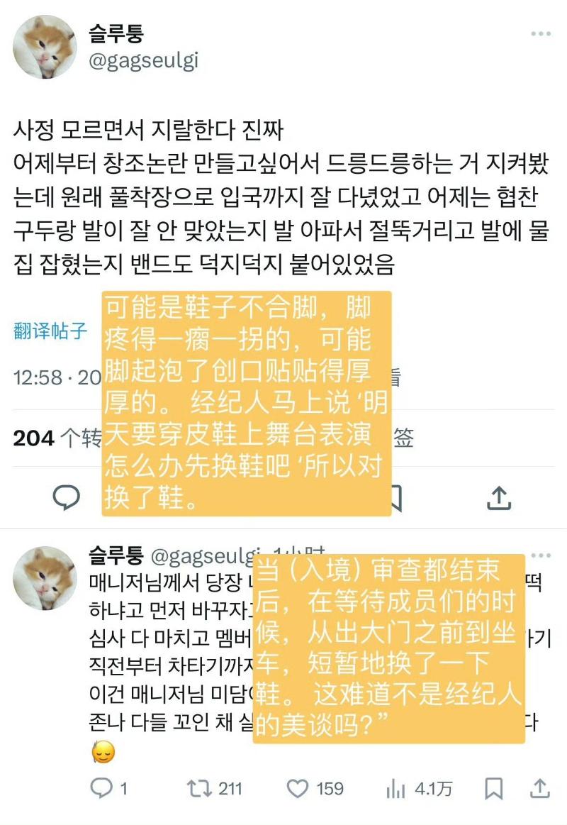 而經紀人也邊走邊回頭注意瑟琪的腳傷,因此在出關前才發生了換鞋一事。就如站姐說的,明明就是經紀人盡責的美談,不明白怎麼會被惡意曲解成「職場霸凌」!