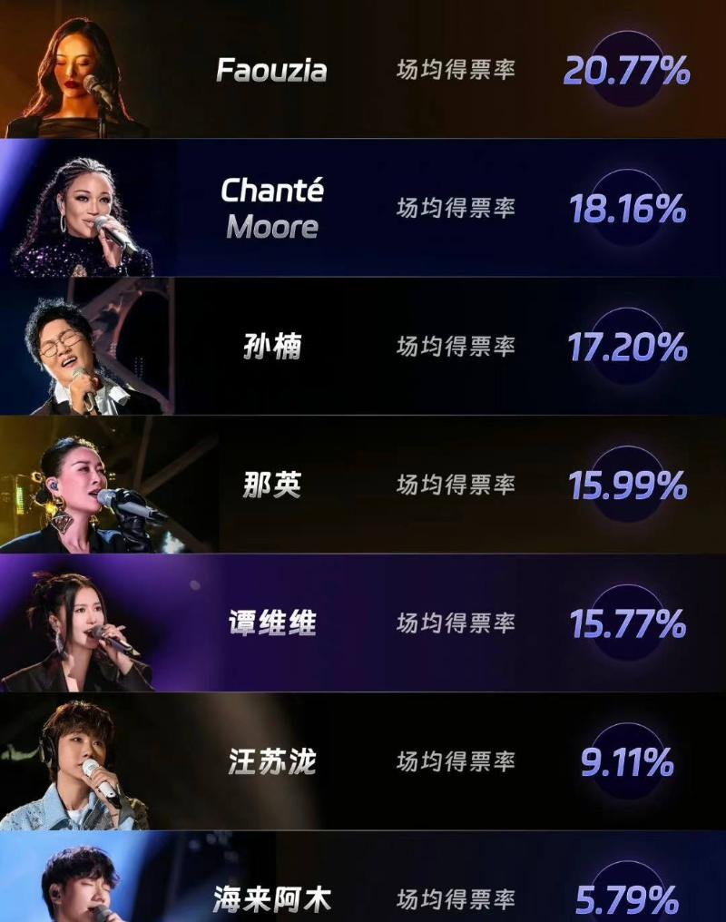 雖然但是,這屆歌王到底算不算實至名歸呢?先來看看之前10次的歌手得票率,排名最好的是凡希亞,那英排名在第四!