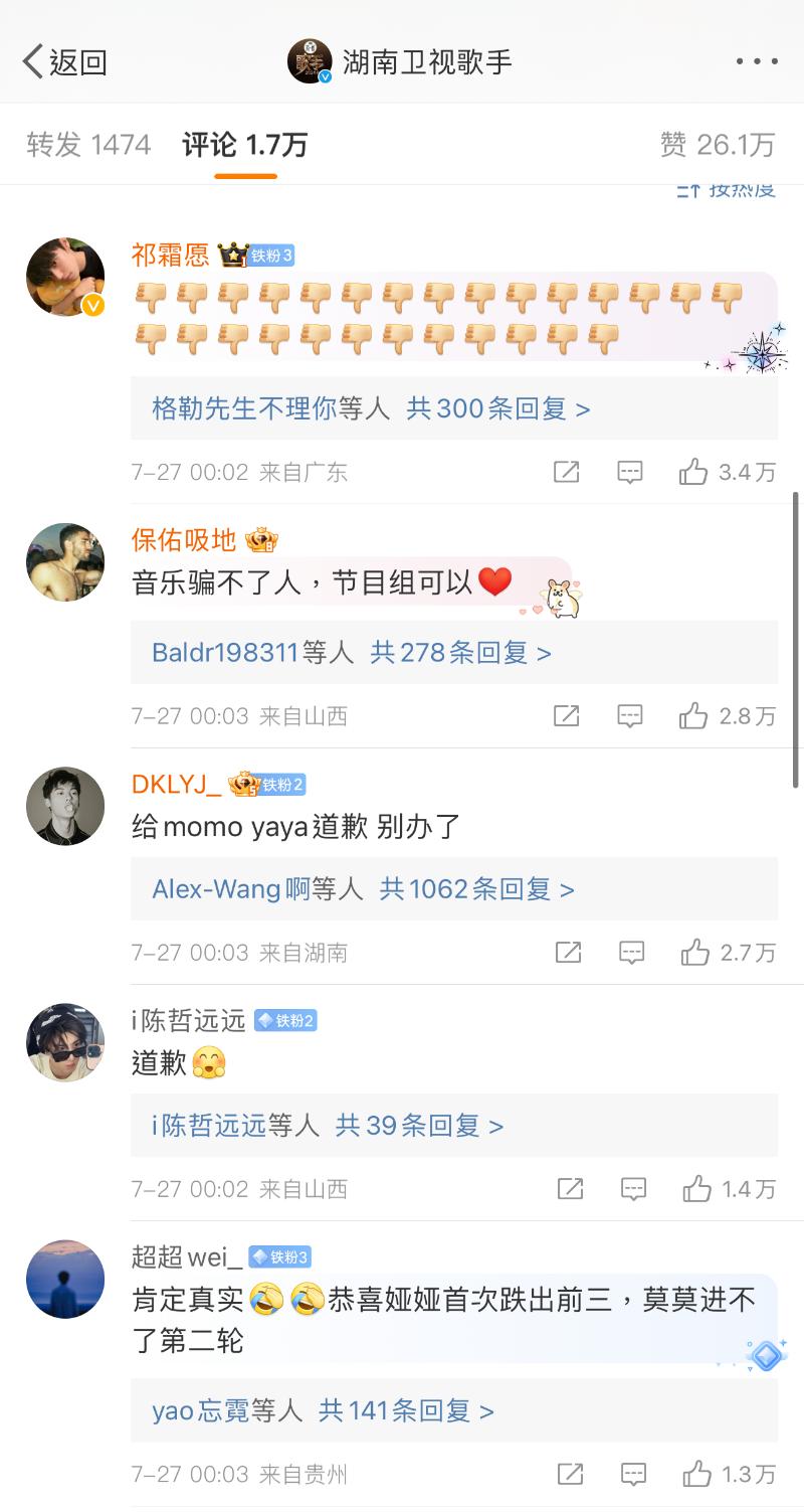 不過那英得歌王,在官方帖評論區卻很尷尬,熱評都在說不公平!