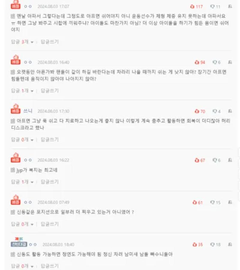 「一直說她生病了,但是如果病得這麼嚴重的話,不是應該好好休息嘛?運動員如果不能維持好身材和體重,只說是因為自己生病了,那別人就會放過他媽?還能讓他參加比賽嗎?愛豆也是一樣的吧?如果身體不適合再繼續當偶像的話,那就該休息了!」