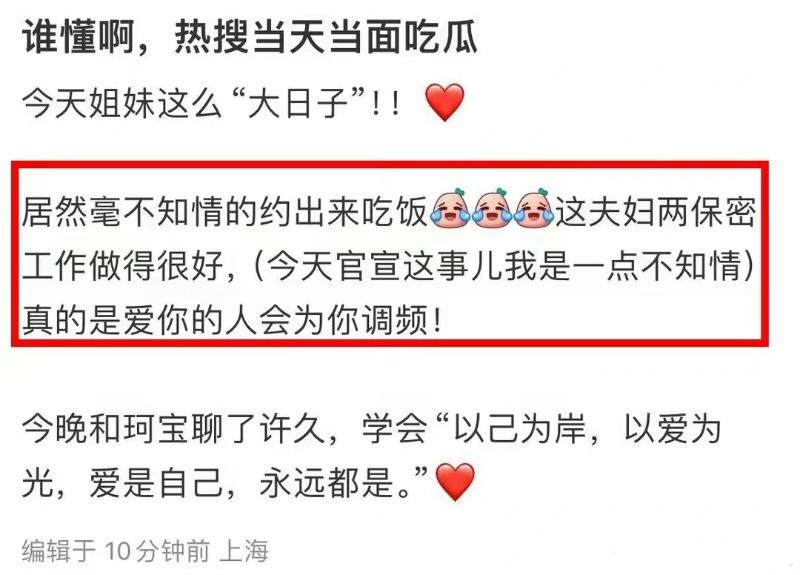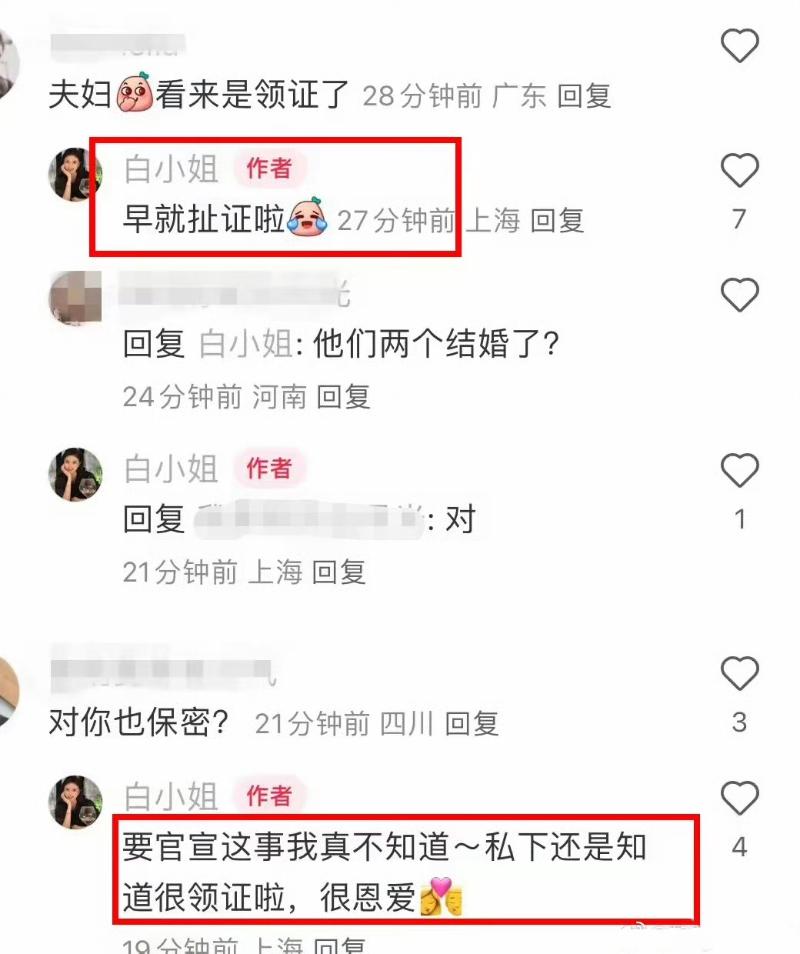 還在評論區重申兩人早就領證啦,並認證兩人很恩愛!