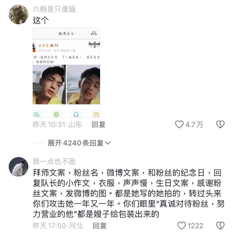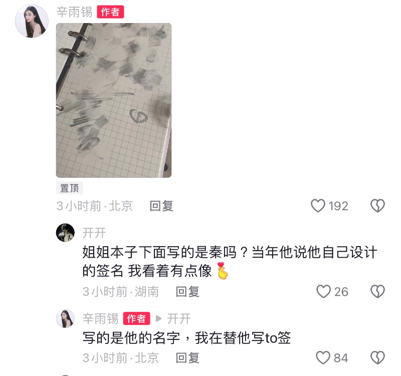 沒想到這兩天,秦霄賢前緋聞女友辛雨錫發文,公開了秦霄賢之前日常微博發的文案、固粉小作文、自拍選圖,甚至簽名都出自她的手!