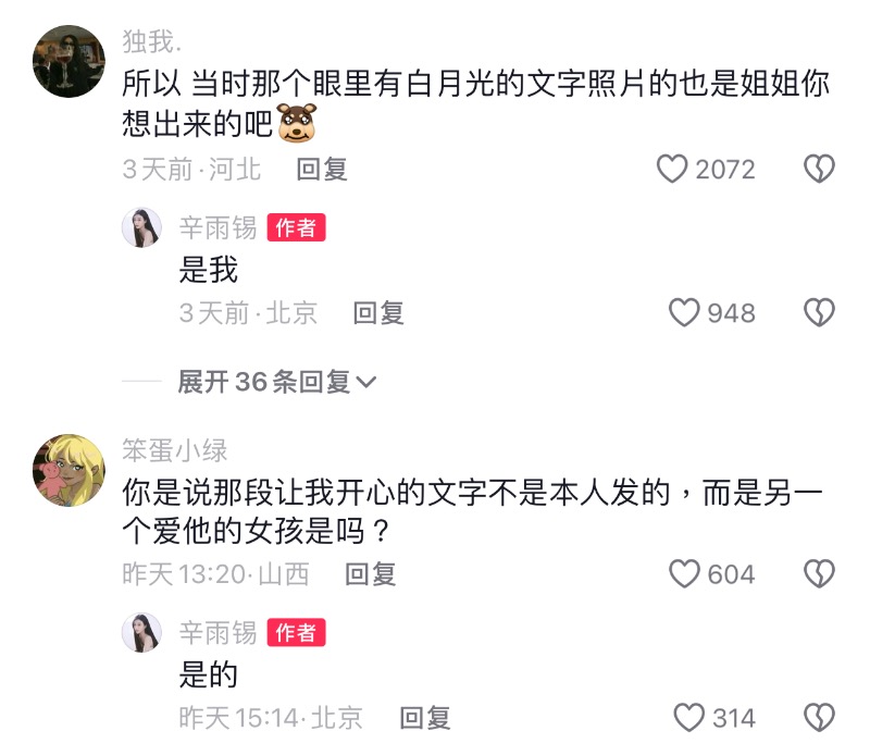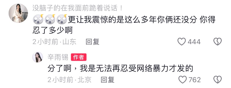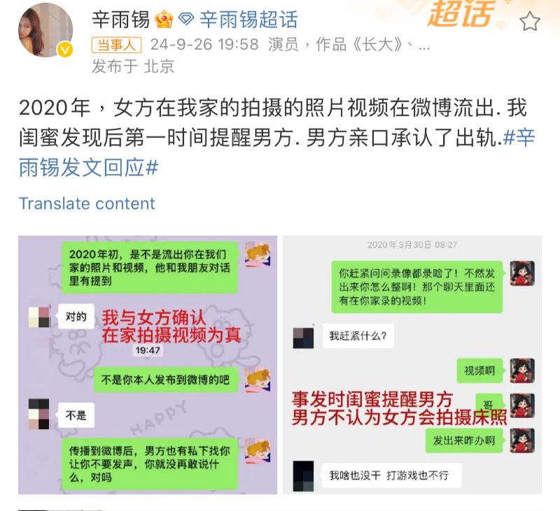 男方親口承認了出軌.#辛雨錫發文回應# 」