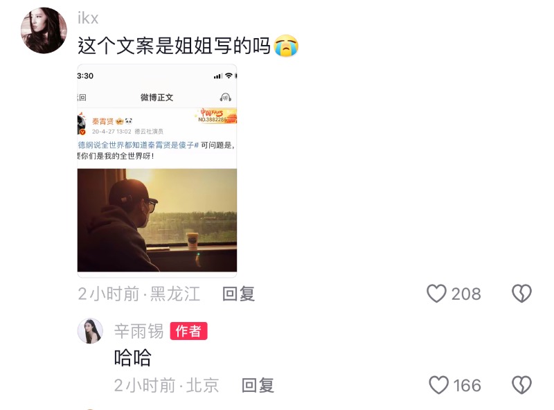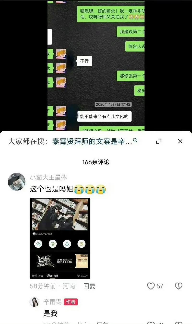 秦霄賢發的拜師文案也是辛雨錫寫的👇