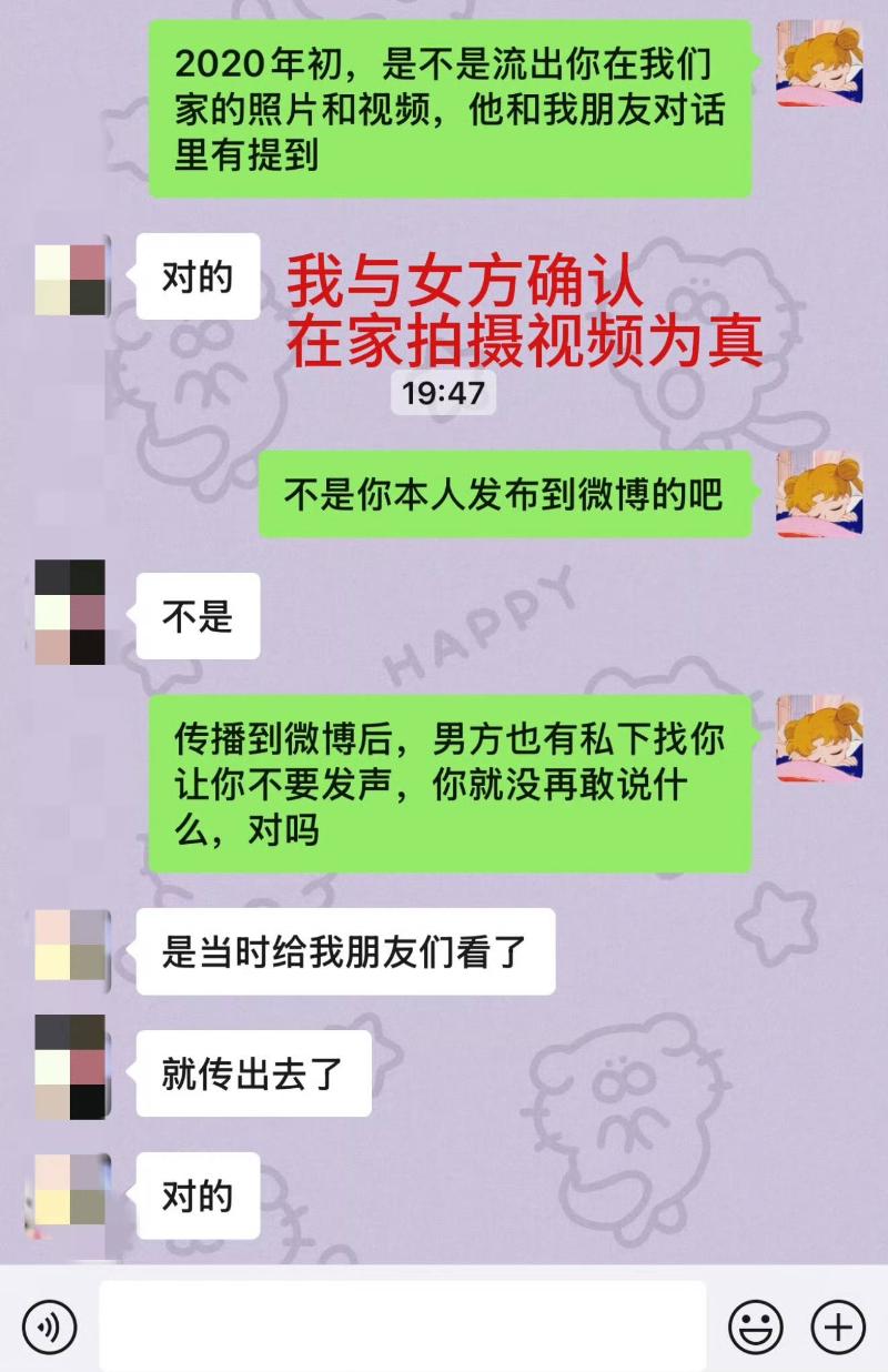 「2020年,女方在我家的拍攝的照片視頻在微博流出.