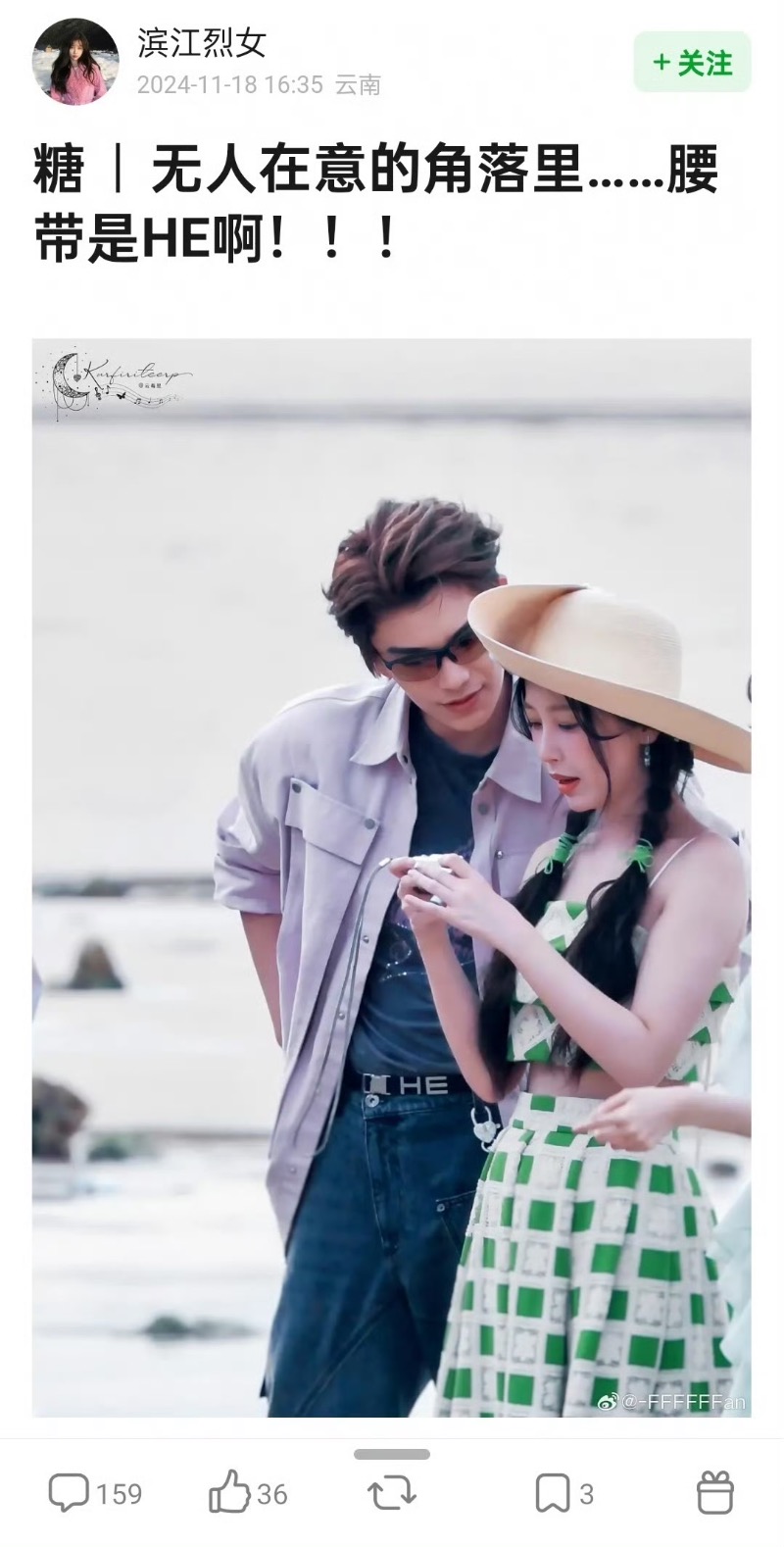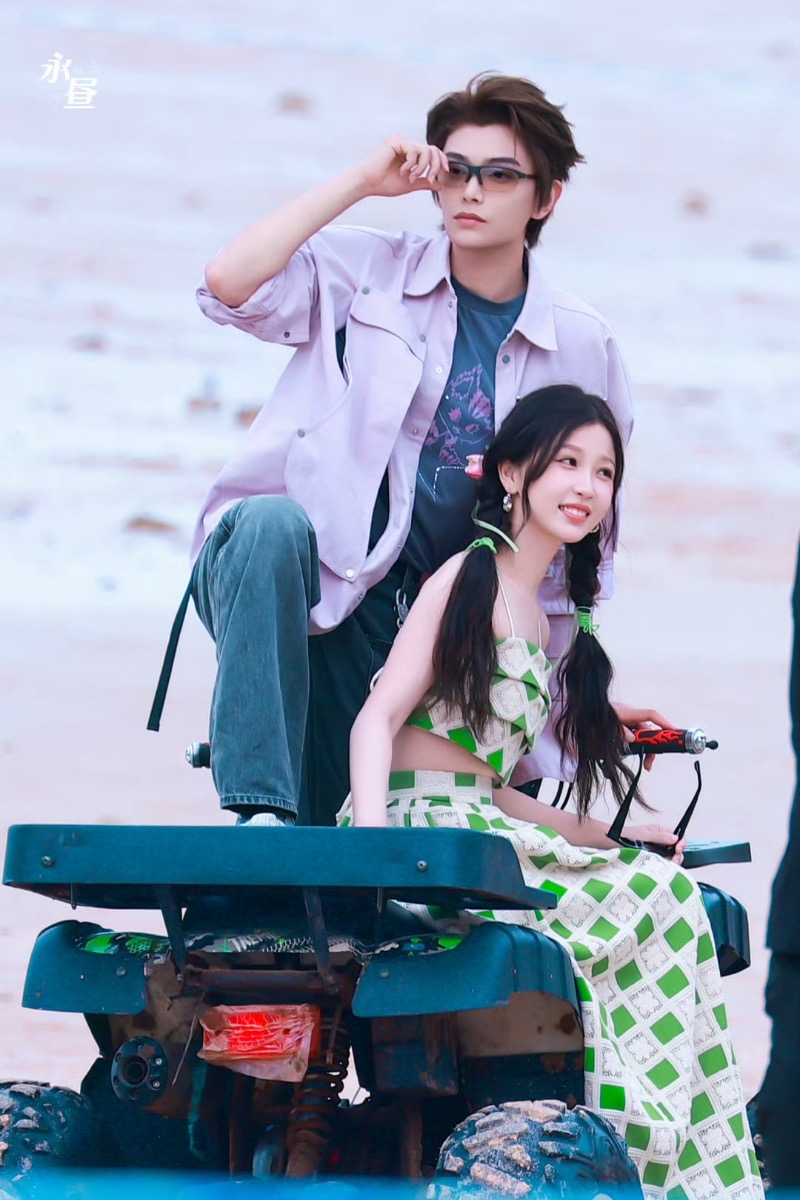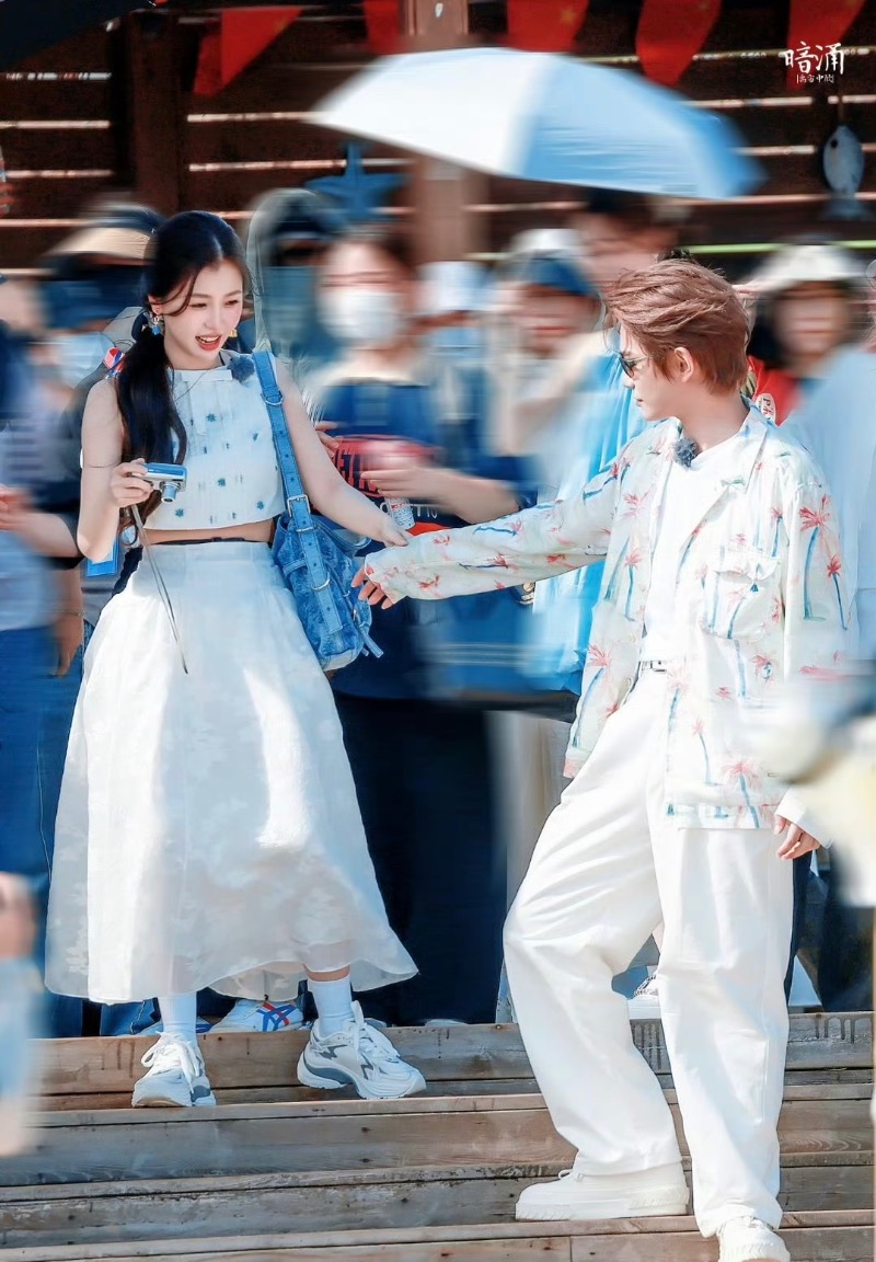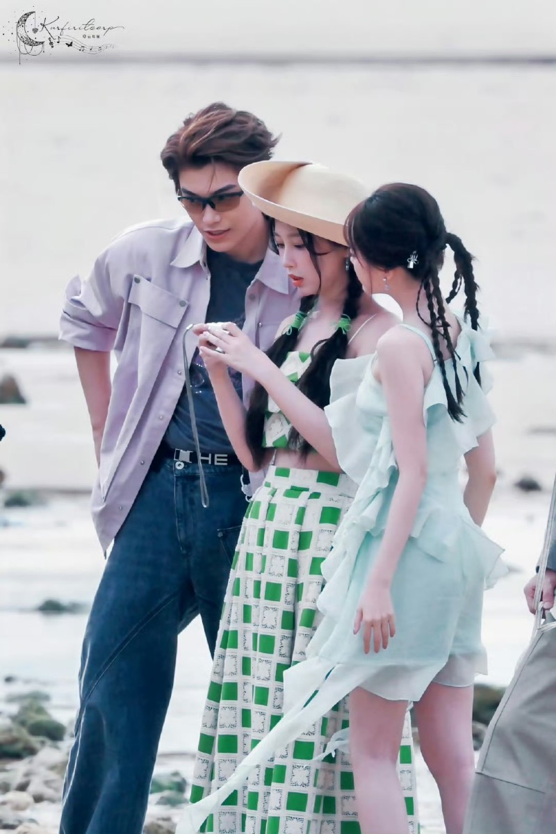 於是,到底這個結局是HE?BE?還是開放式結局,引起了不少爭議~在劇迷還在爭論不休的時候,竹林四俠也已經開始了團綜拍攝,我們丁禹兮和虞書欣,在現場更是不斷在撒狗糧,像是互拍👇