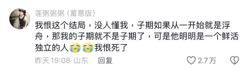 看起來是HE,但不少劇迷覺得這個結局簡直就是BE,因為子期是子期,浮舟是浮舟,兩個根本不能是同一人👇