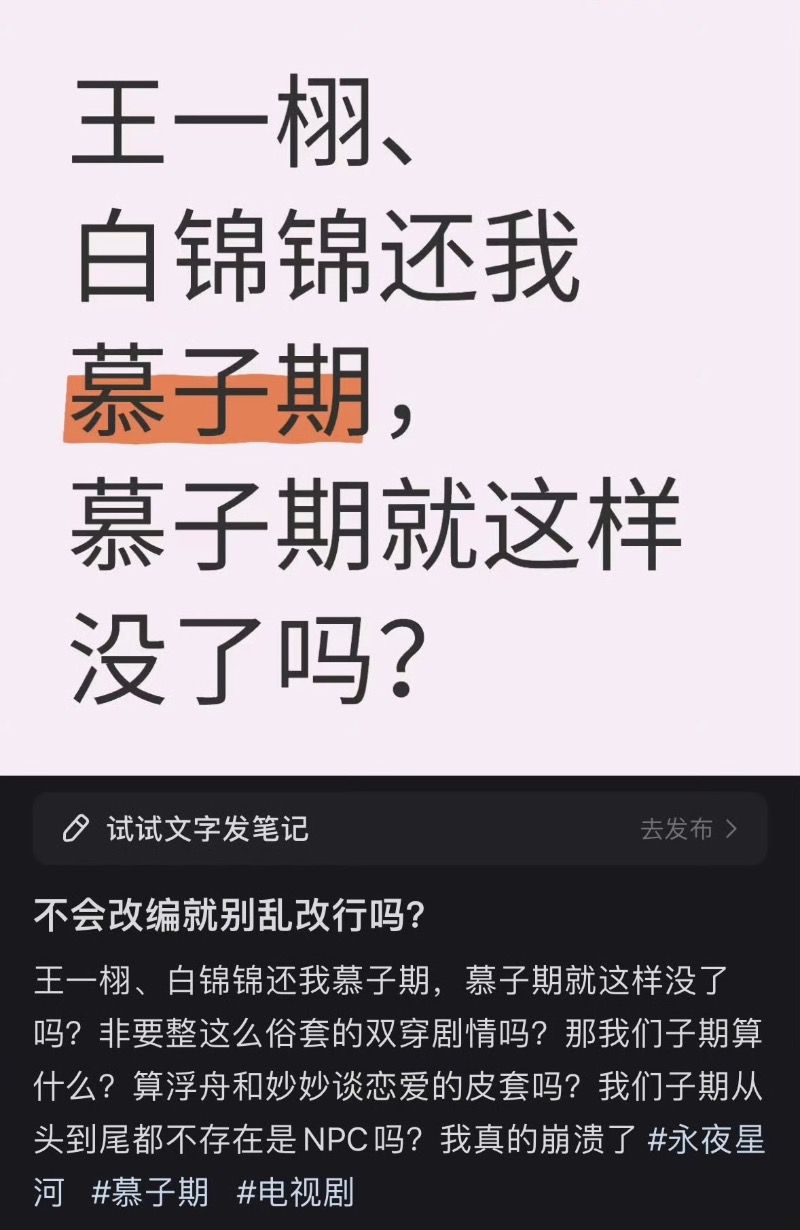 就是說,《永夜星河》的結局,真的引起了不少爭議了啊!是噠,虞書欣、丁禹兮主演的《永夜星河》大結局播出,最後妙妙(虞書欣)和慕聲(丁禹兮)一起改寫了最後的結局回到現實世界,子期也在最後告訴了妙妙他就是作者浮舟,一切回到正軌,浮舟也再版了《永夜星河》。