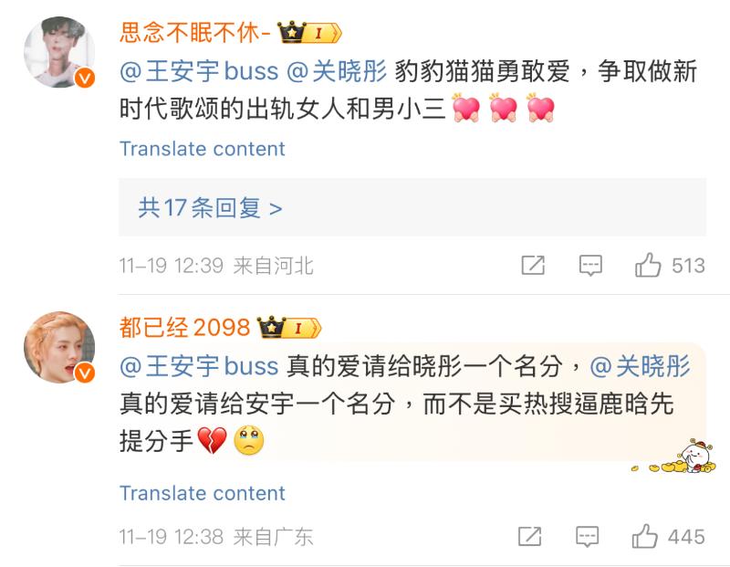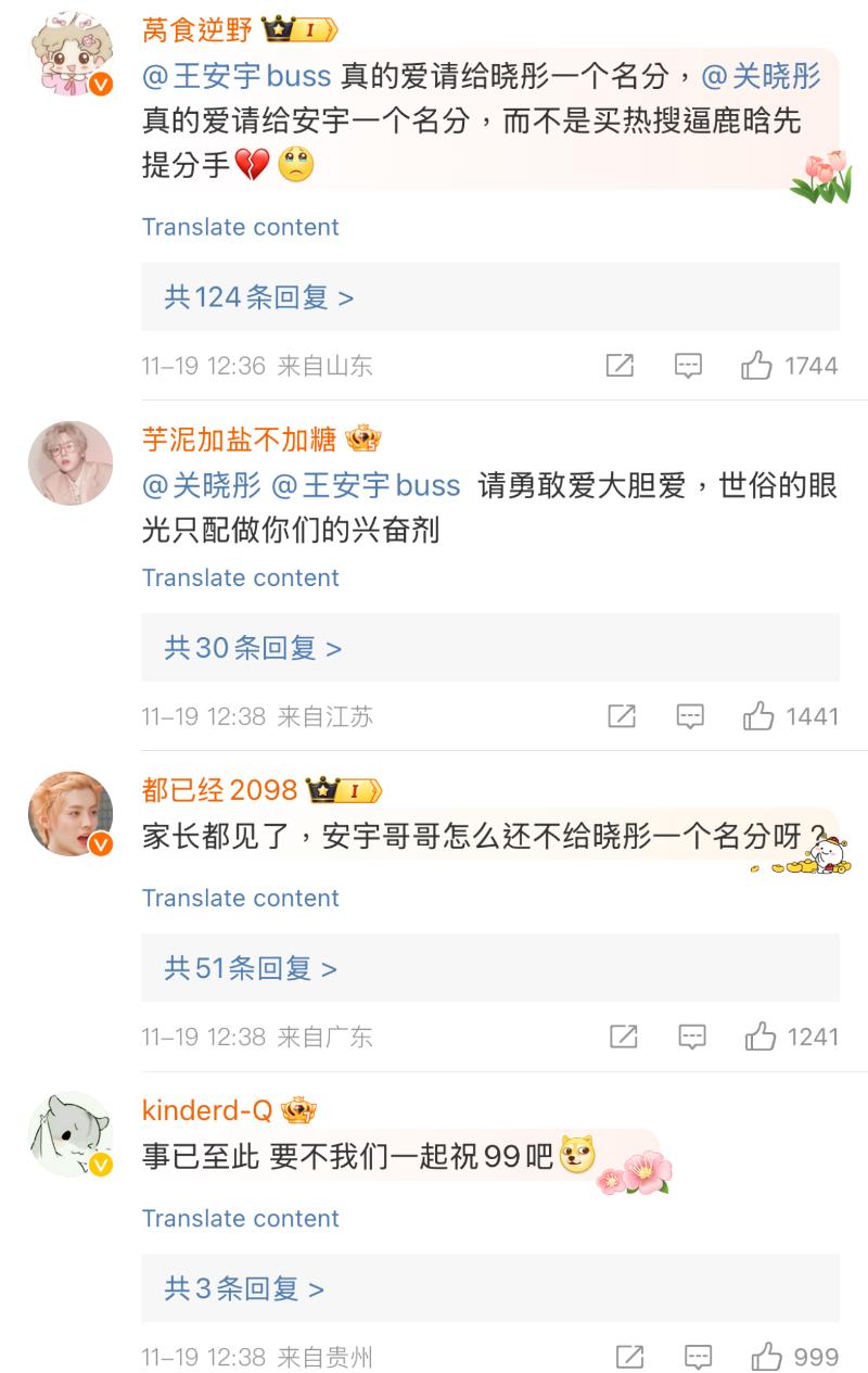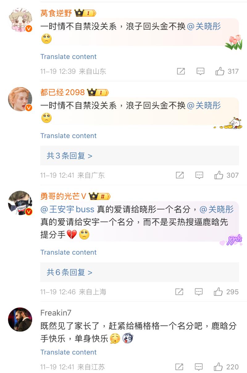 不過這一次評論區大翻車,不少鹿晗粉絲留言,希望王安宇可以真的和關曉彤在一起,不要一直利用兩人CP炒熱搜👇