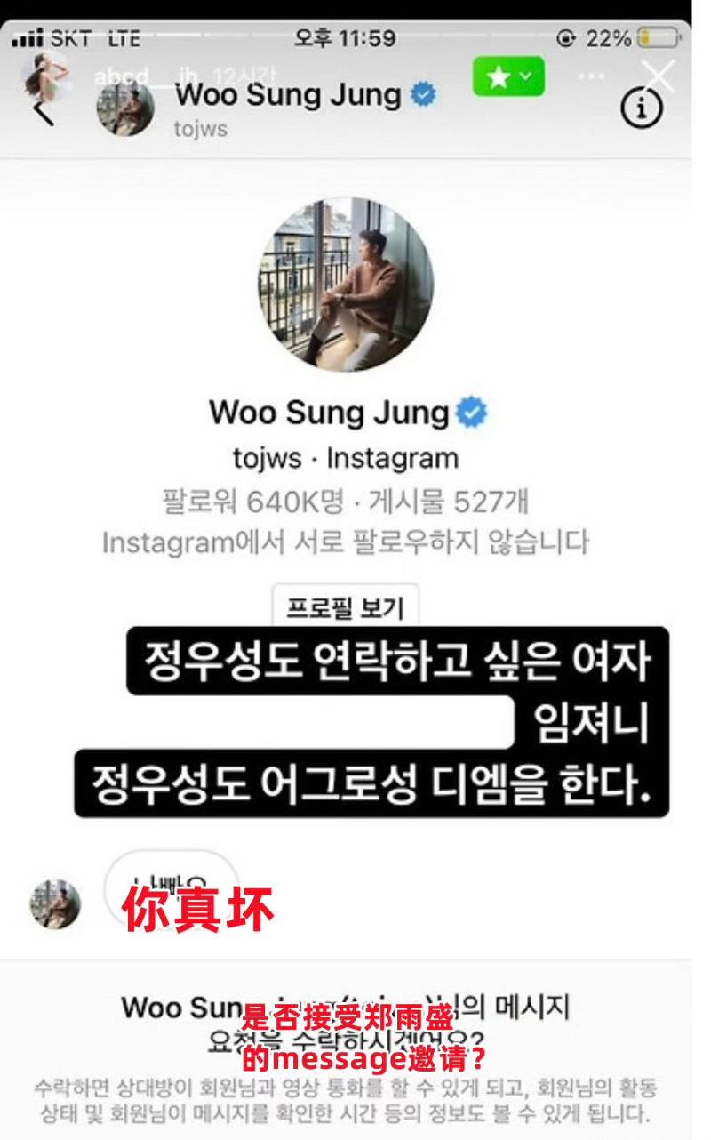 這樣的關係已經很錯綜複雜了,沒想到原來後續更炸裂!那就是原來有不少人都收過鄭雨盛的私聊聯繫!有素人公開了鄭雨盛聯繫自己的INS,被要私信的素人震驚到以為他被盜號了!來看看👇