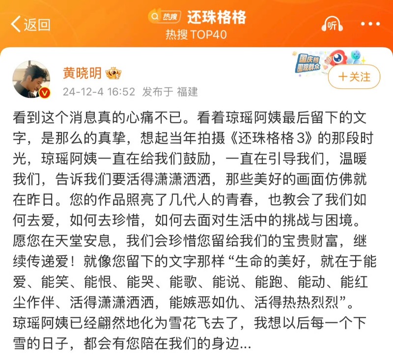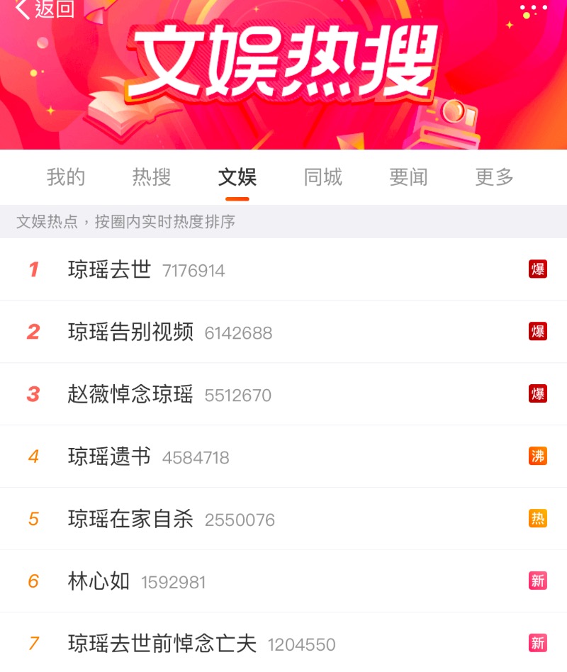 目前熱搜榜都是瓊瑤相關熱搜,希望阿姨一路走好👇