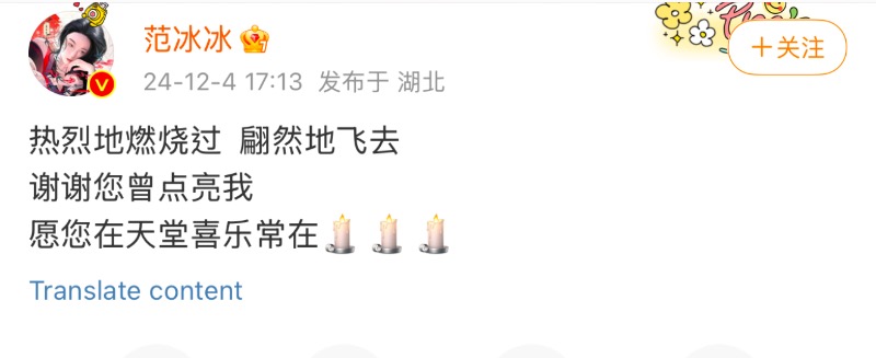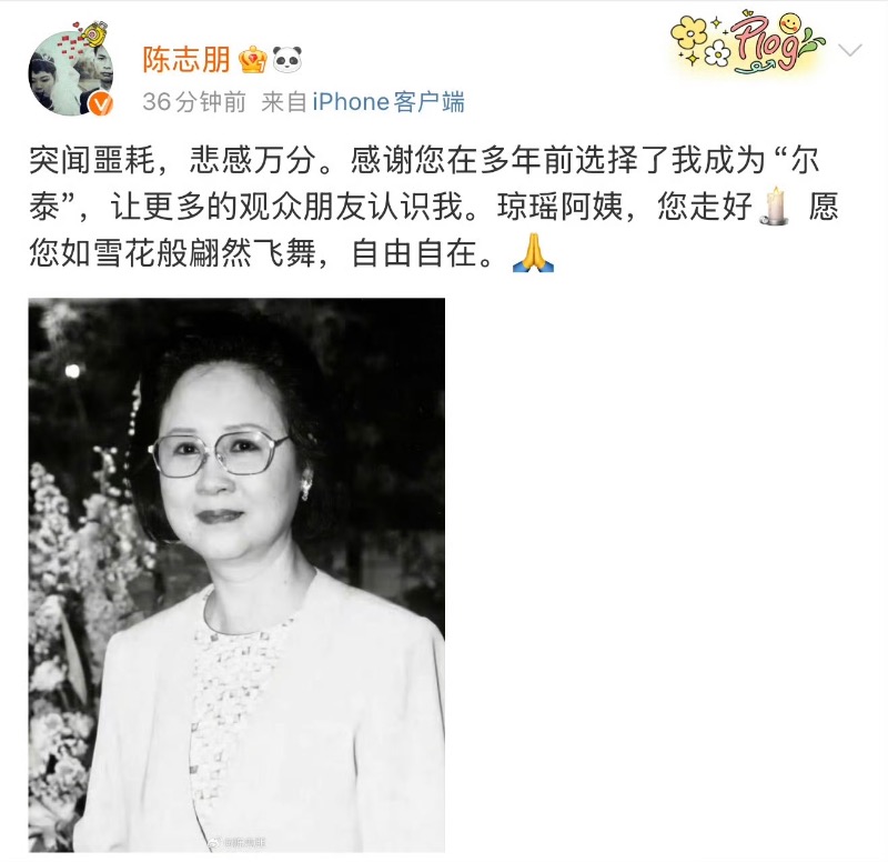 在《還珠格格》中飾演金鎖的走紅的范冰冰也發文悼念👇