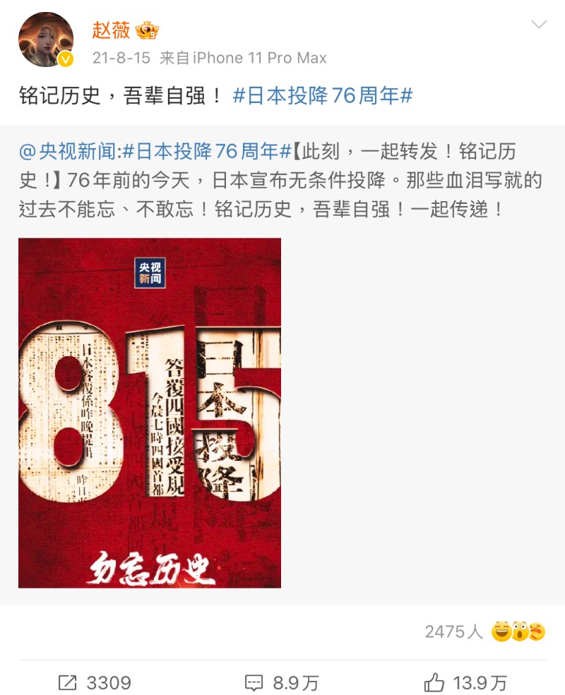 至於《還珠格格》靈魂人物的小燕子趙薇,由於在2021年8月中無預警被封殺,至今依然不知道封殺理由,但已經三年多沒有更新微博👇