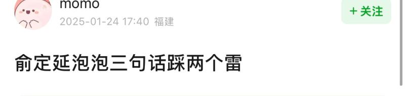 沒想到定延就因為在泡泡的回復,直接上了熱搜!到底怎麼回事呢?原來是有網友公開了定延的泡泡回復,表示「三句話踩兩個雷」!