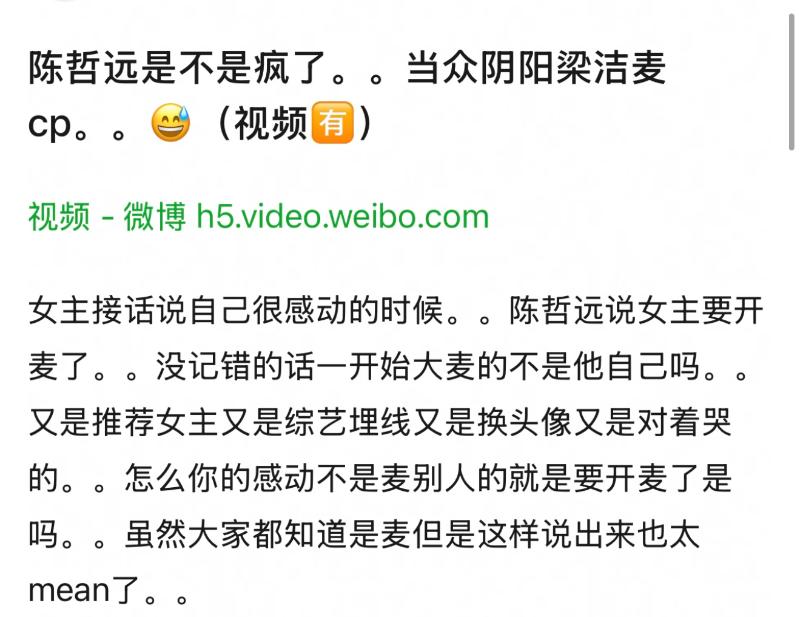 沒想到陳哲遠下一秒就反問梁潔:「要開始賣了(炒CP)是嗎?」