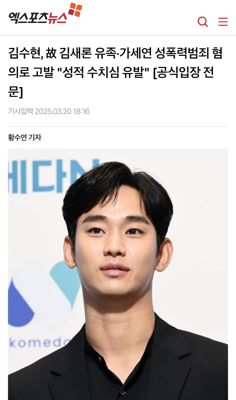 原來金秀賢公司主要是針對前幾日「橫豎研究所」公開的金秀賢脫褲洗碗照,公司表示這張照片是金秀賢與已成年的金賽倫交往期間拍攝的照片,且照片中包含可能引發性羞恥感的金秀賢的身體部位。