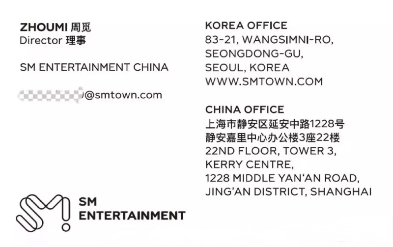 沒想到再之後,就連名片都曝光了,顯示周覓出任了SM中國的理事!媽啊!居然是真的!