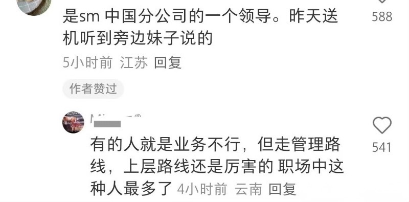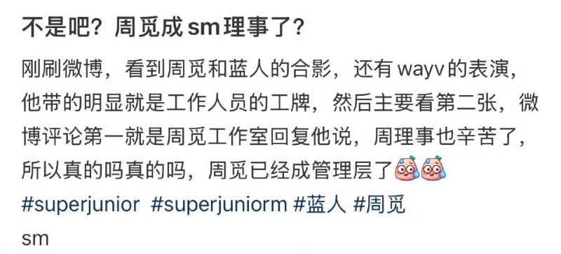 就有網友留言,表示周覓是出任了SM中國分公司的領導👇