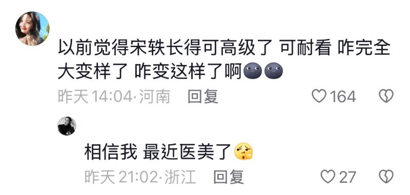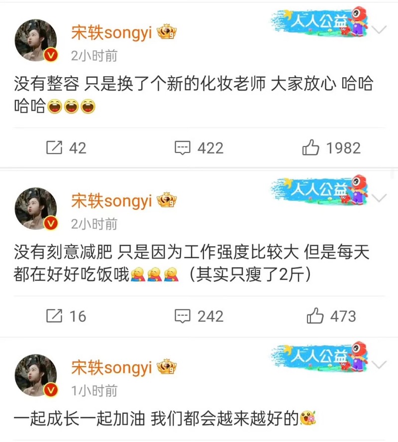隨著網友熱議,宋軼也在自己的微博發聲回應,明確表示自己沒有整容,只不過換了新的化妝師,還表示自己沒有可以減肥,自己只是瘦了2斤👇