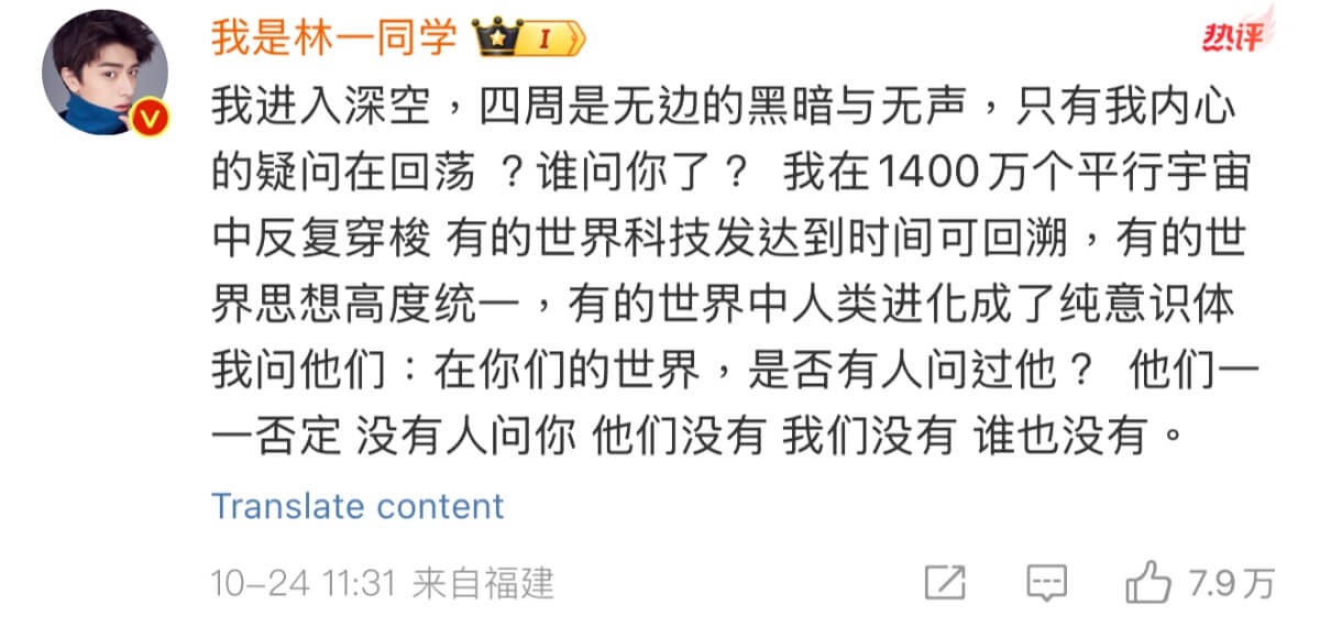結果引來了林一在評論區大破防,直接發了一長段哲學式留言,簡單來說就是:「誰問你了?」