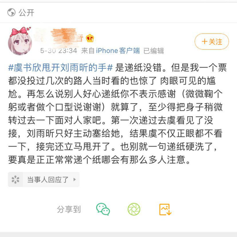 甚至還說,「下一個就是劉雨昕回復你了!」