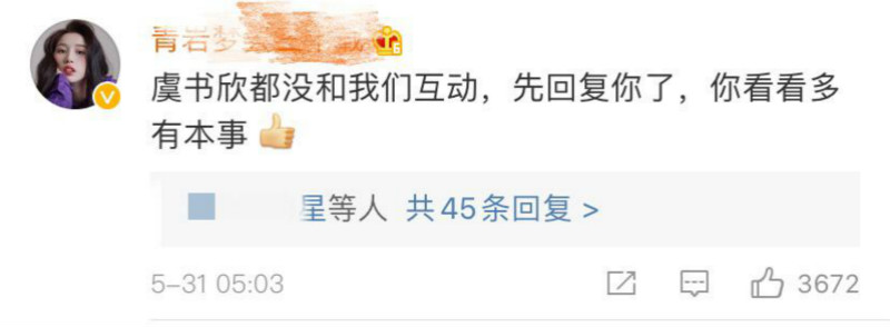 在虞書欣的小號回復後,粉絲們都紛紛在該名網友的貼文下留言:表示羨慕啊!!