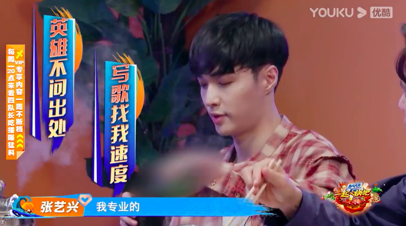 在最新的《一起火鍋吧》中,張藝興提到自己的音樂創作之路,表示自己做音樂很快,自己是“專業的”。
