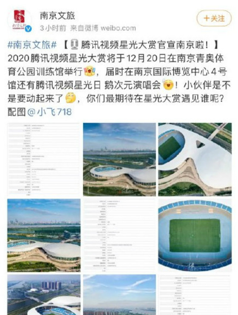 而根據最新網傳消息,今年的騰訊視頻星光大賞官宣南京!將于12月20日在南京青奧體育公園訓練館舉行!!!