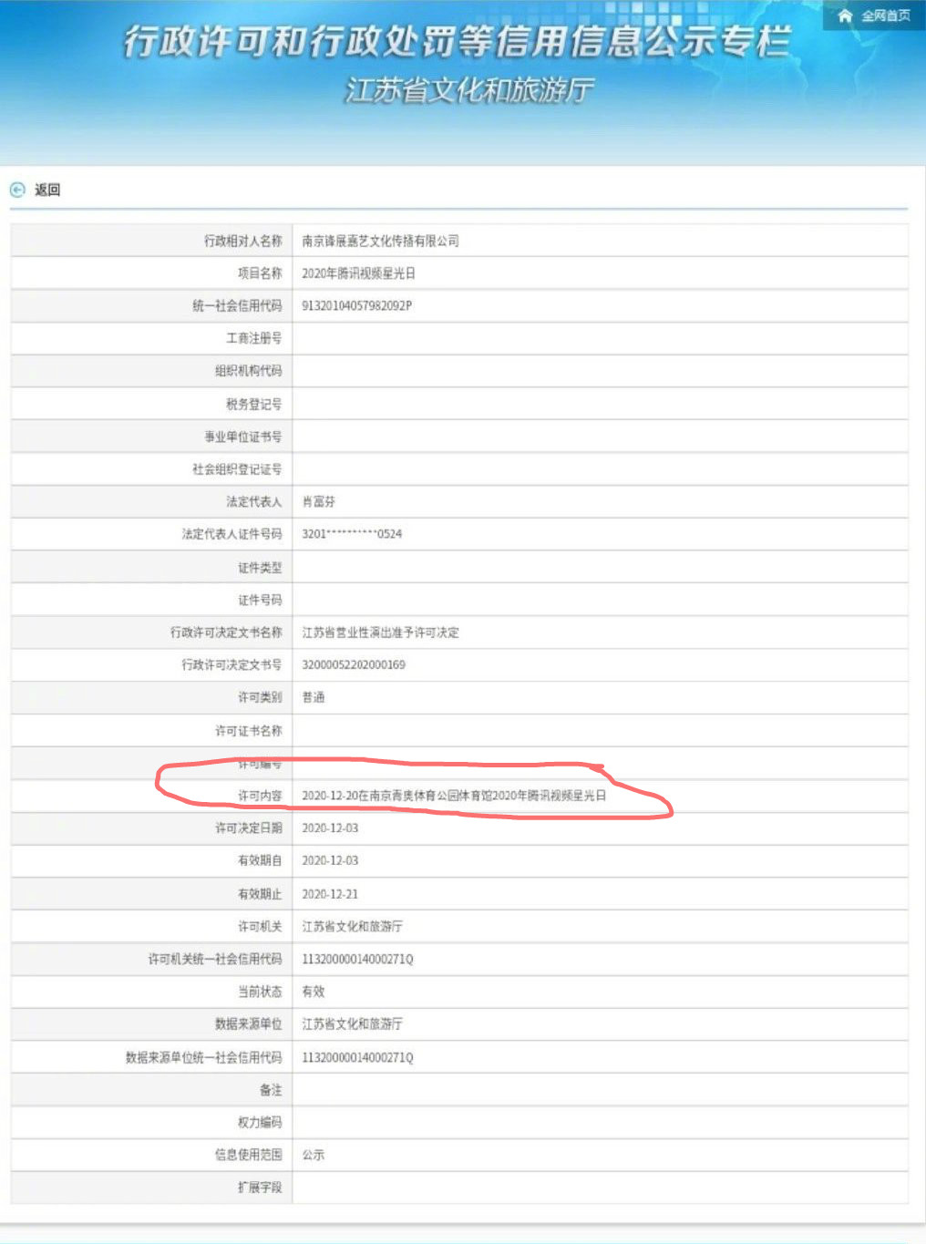 另外就連舉辦公文都發了出來,的確是寫了12月20日騰訊視頻星光日!