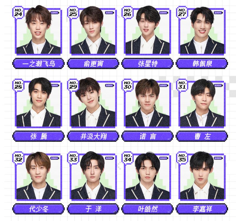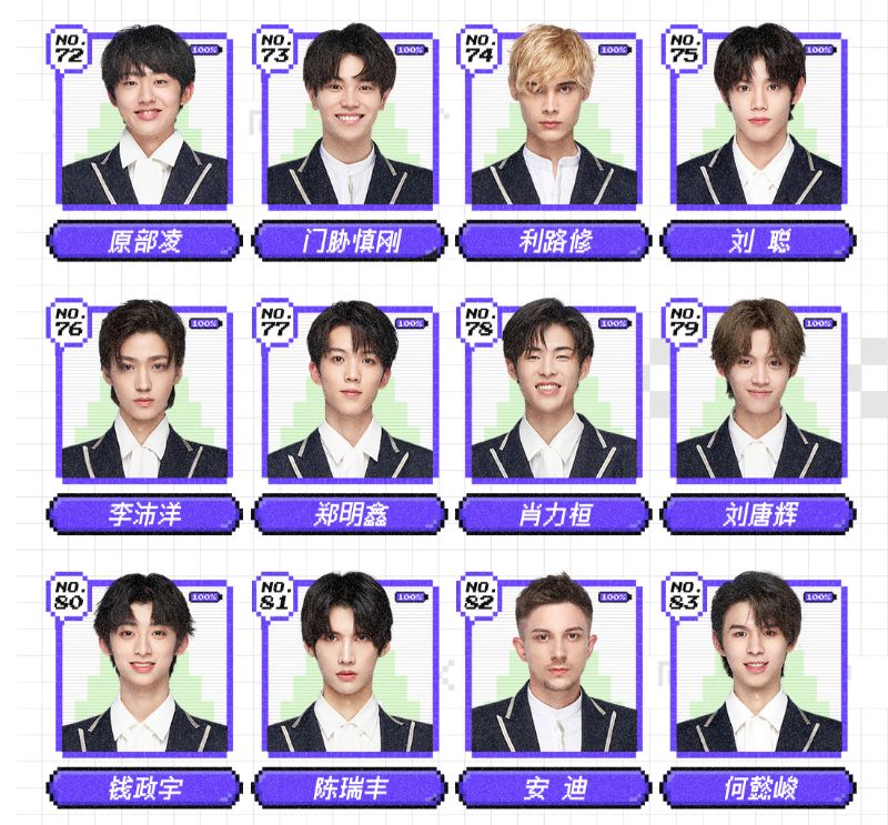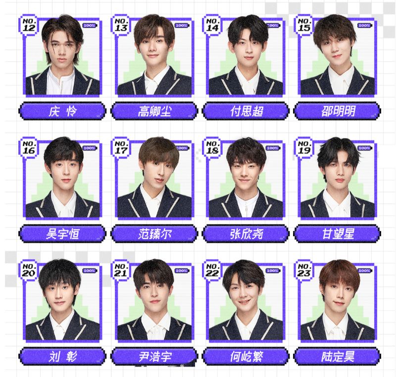 第12-23名:慶憐、高卿塵、付思超、邵明明、吳宇恆、范臻爾、張欣堯、甘望星、劉彰、尹浩宇、何屹繁、陸定昊