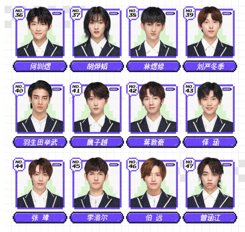 第36-47名:何圳煜、胡燁韜、林煜修、劉嚴冬季、羽生田拳武、魏子越、蔣敦豪、懌涵、張璋、李洛爾、伯遠、曾涵江