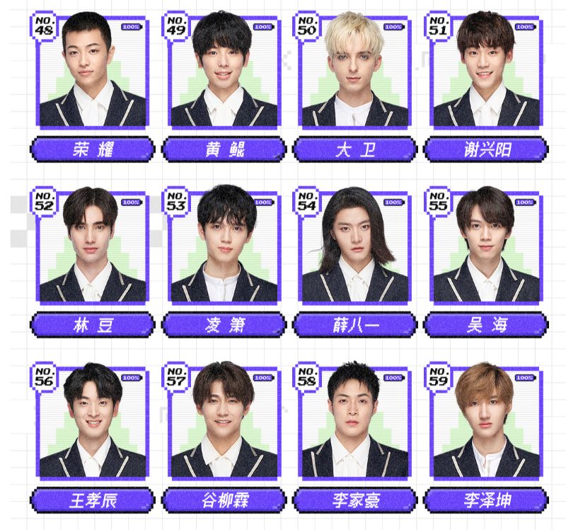 第48-59名:榮耀、黃鯤、大衛、謝興陽、林豆、凌簫、薛八一、吳海、王孝辰、谷柳霖、李家豪、李澤坤