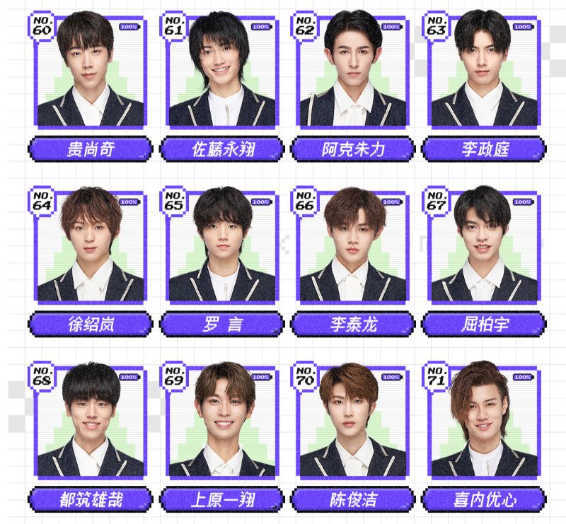 第60-71名:貴尚奇、佐藤永翔、阿克朱力、李政庭、徐紹嵐、羅言、李泰龍、屈柏宇、都築雄哉、上原一翔、陳俊潔、喜內優心