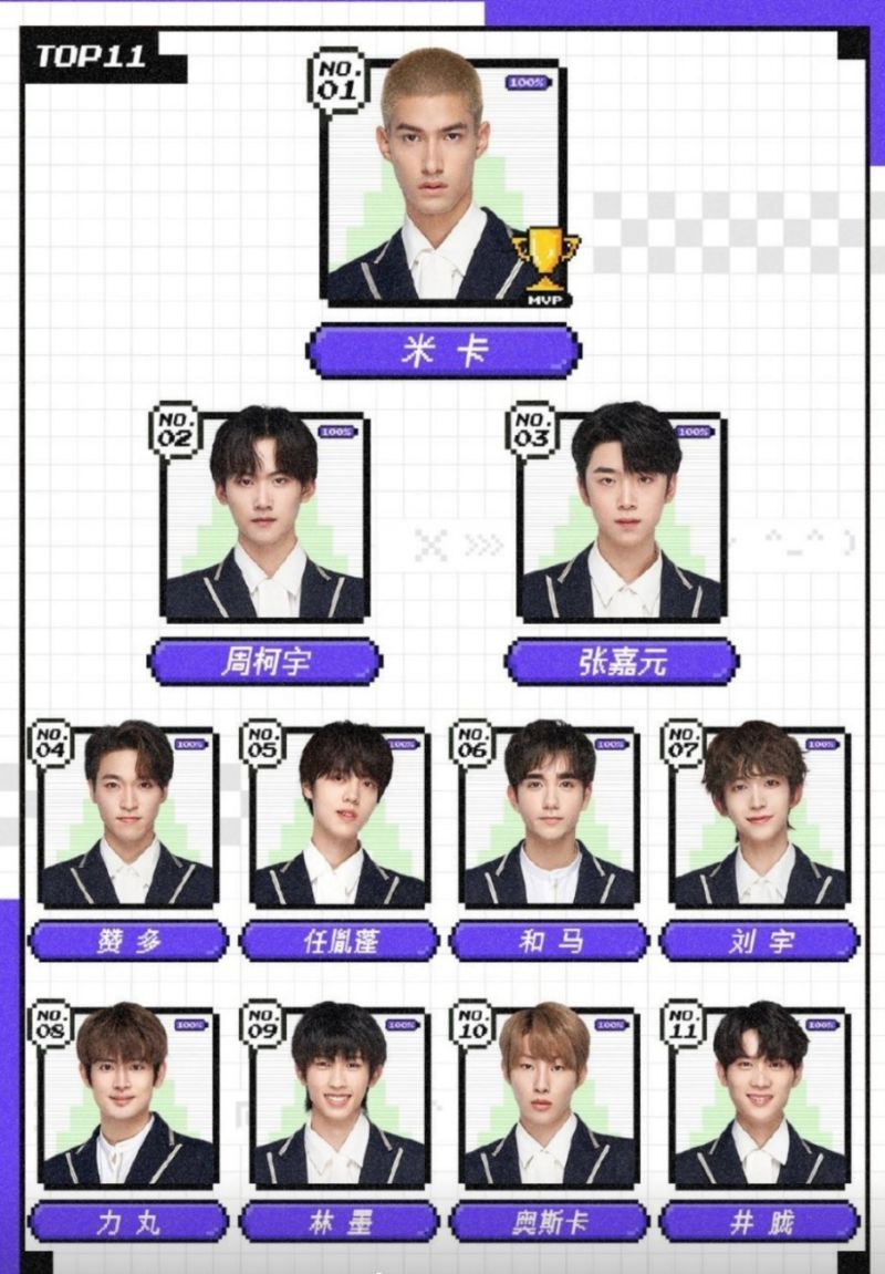 第1-11名:米卡、周柯宇、張嘉元、贊多、任胤蓬、和馬、劉宇、力丸、林墨、奧斯卡、井胧。
