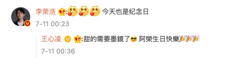 結果沒想到我們壽星公撒狗糧沒在客氣,直接回復:「今天也是紀念日!」是噠,兩人就是在李榮浩生日時求的婚啊!噗!甜的王心凌都忍不住留言:「甜的需要墨鏡了😎 阿榮生日快樂🎉🎉🎉」