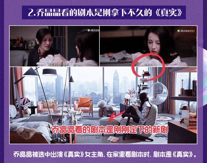 2. 晶晶被選中出演李導的新戲《真實》女主角,所以她在家看的劇本,也真的是《真實》的劇本。