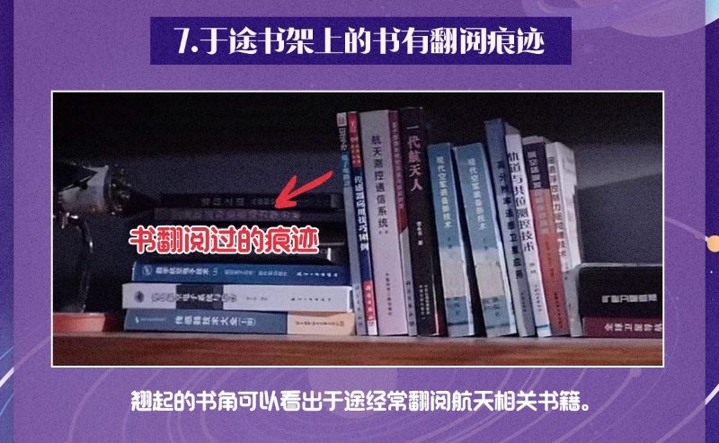7. 于途書架上的書都不是新書,全部的書都有翻閱的痕跡,而且都是和航天相關的書籍。