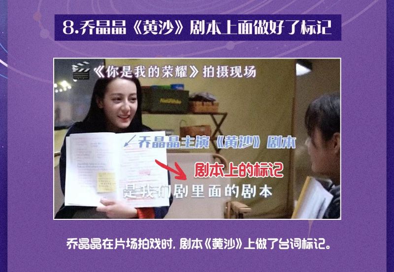 8. 在片場拍攝時,晶晶主演《黃沙》劇本上,真的都做上了台詞標記。