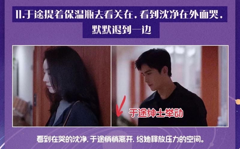 11. 于途的溫柔+1!在病房外看見關在的妻子在哭,不打擾就默默離開。