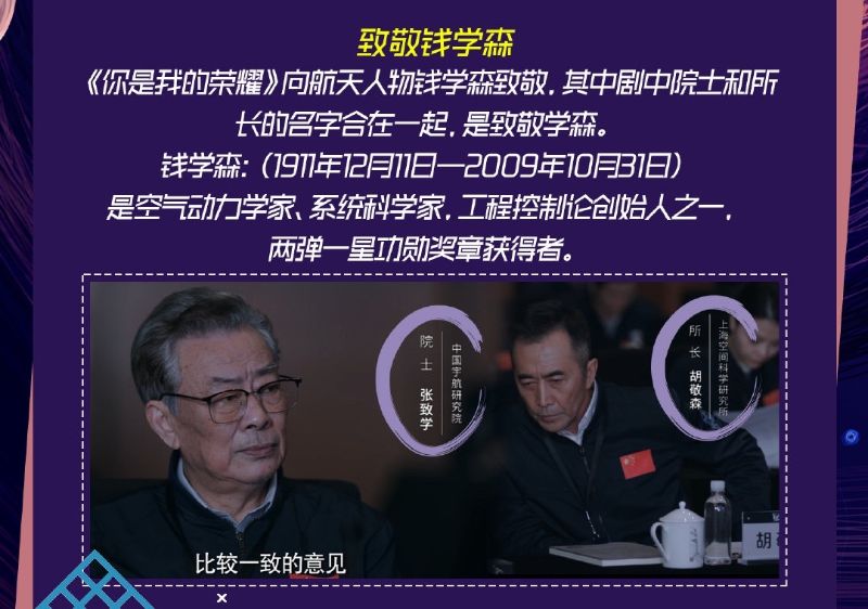 18. 出現在劇中的院士(張致學)和所長(胡敬森)的名字合在一起,是致敬學森。錢學森是中國航天史的偉人之一。